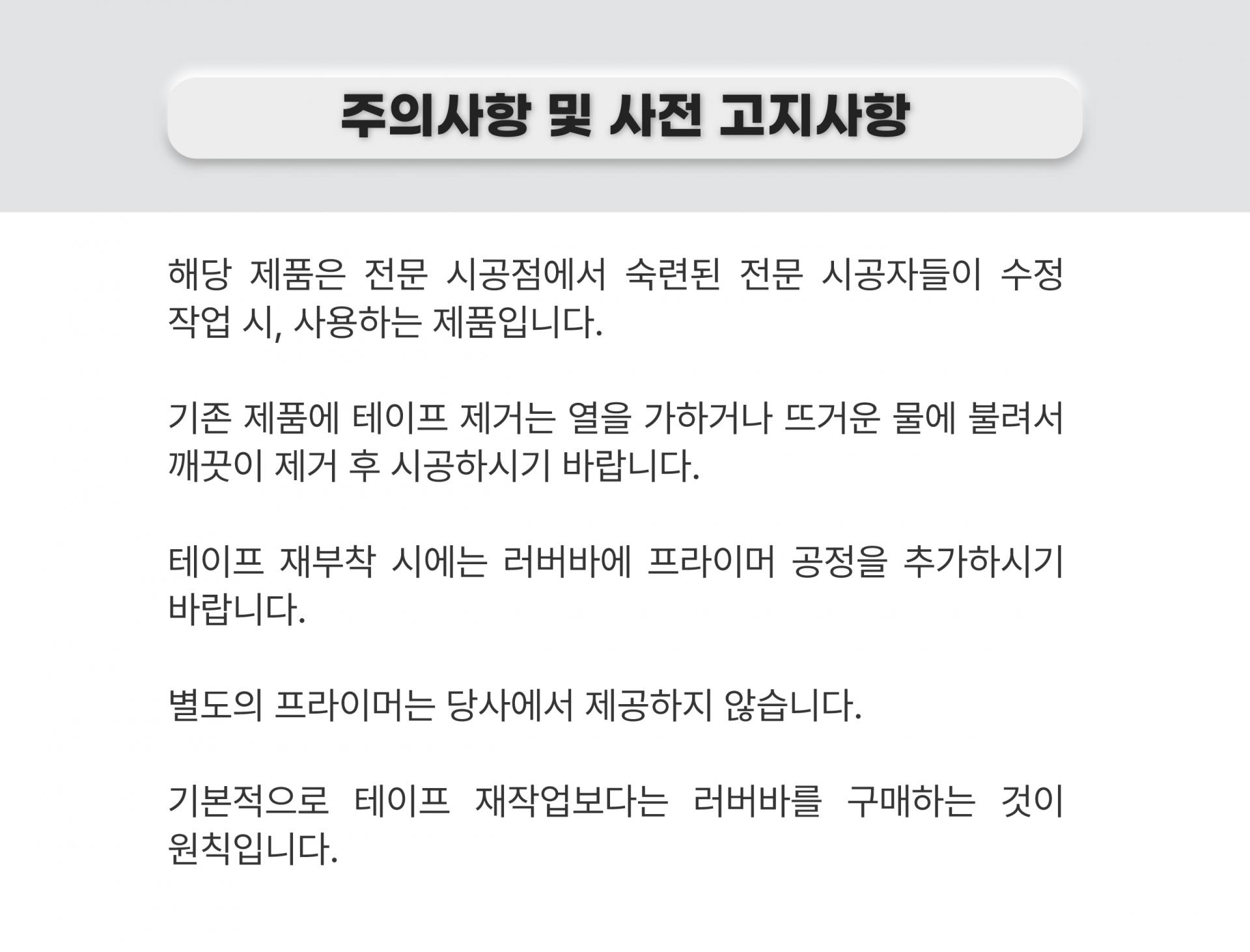주의! 네오가드는 프라이머를 바른 뒤 3M 테이프를 부착해야 됩니다.