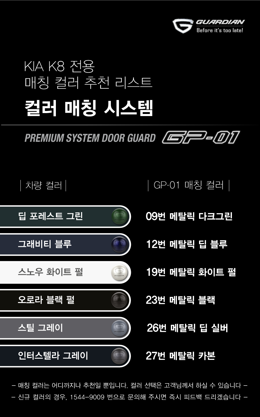 *장착 예시는 참고 자료이며, 필수 장착 위치는 아닙니다. 방어 원하시는 위치에 맞춰 조정 가능합니다.