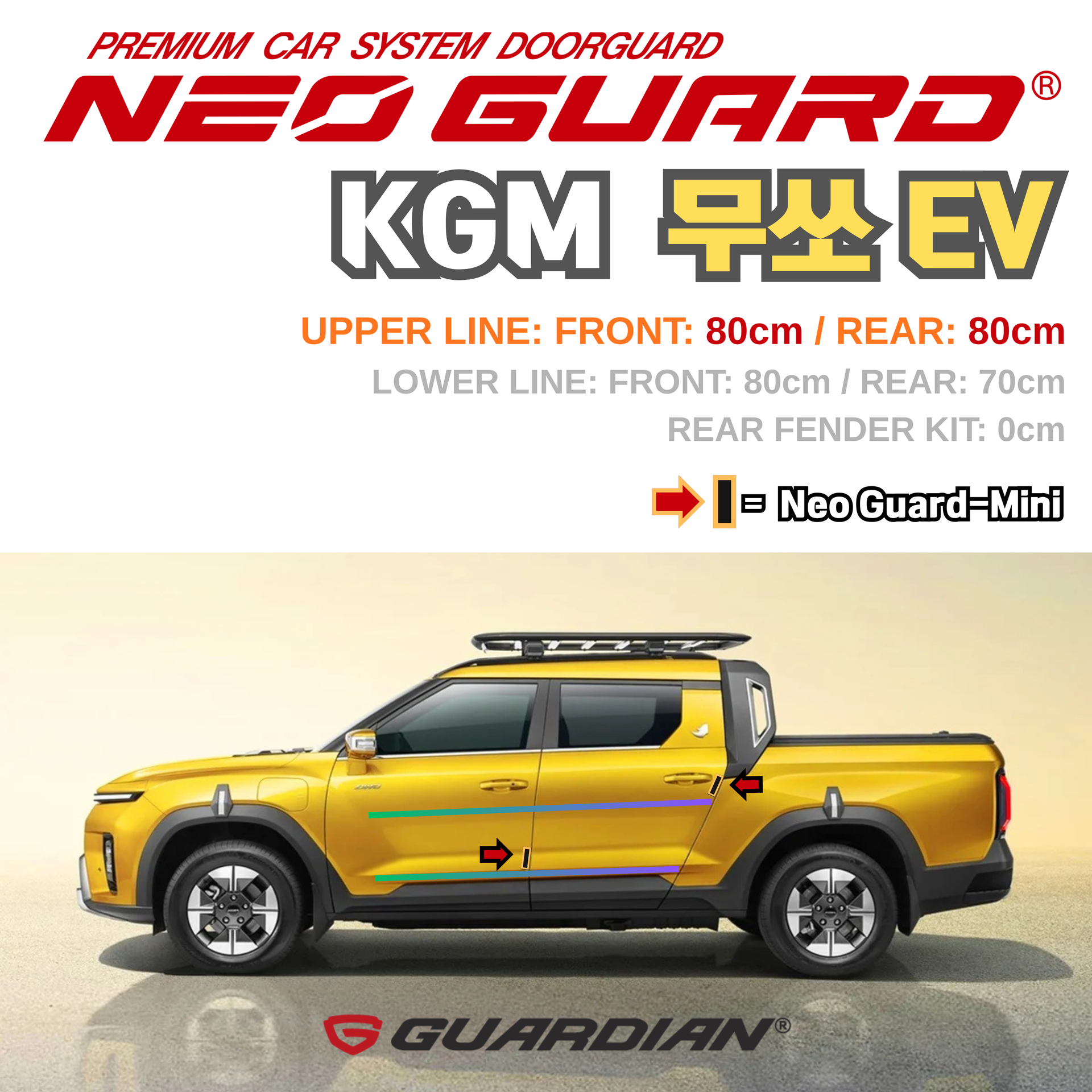 KGM 무쏘 EV 전용 문콕방지가드 가디언 네오가드 셀프 시공 DIY세트 (자동차 딜러 서비스용)