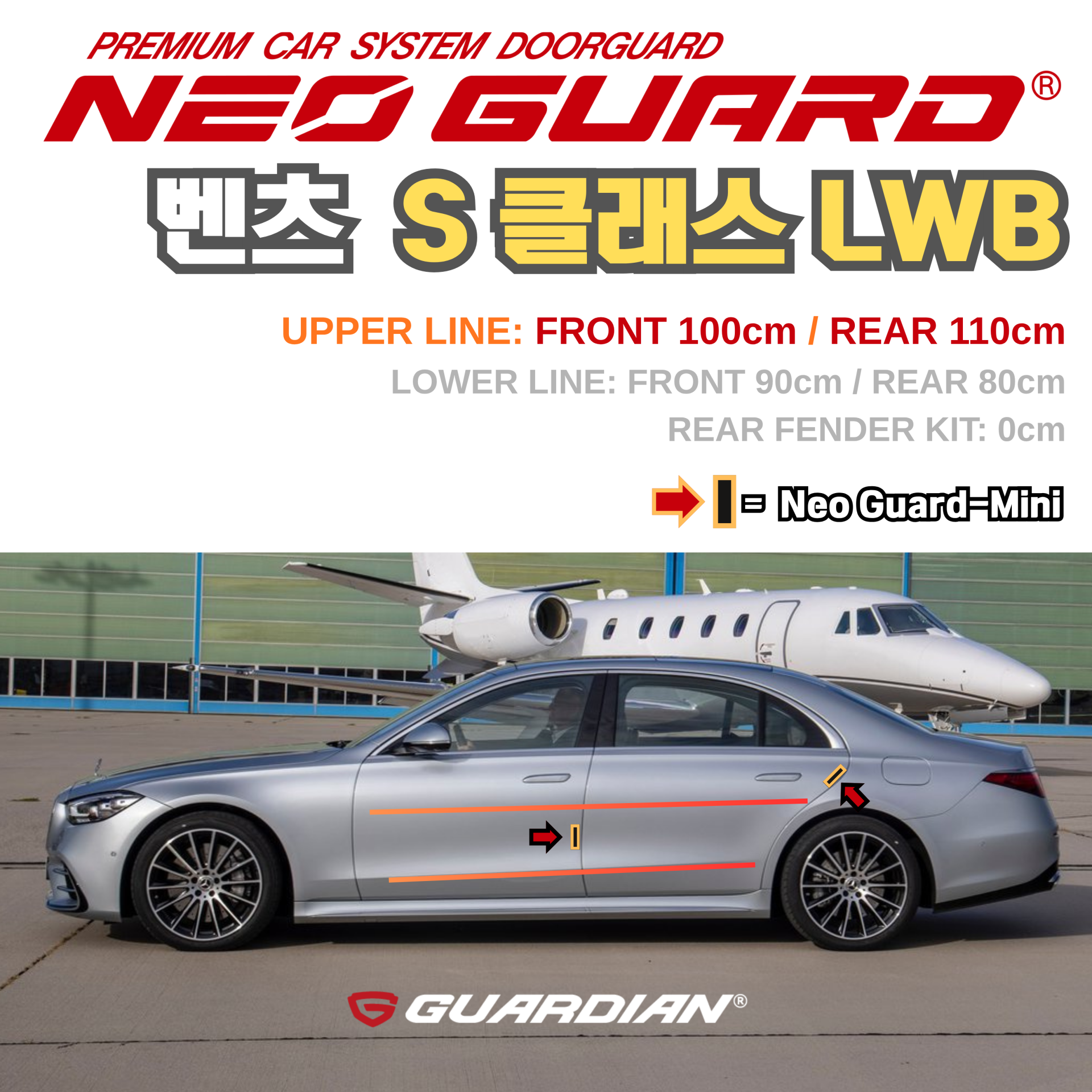 벤츠 S클래스 LWB전용 차량용 도어가드 문콕방지가드 네오가드