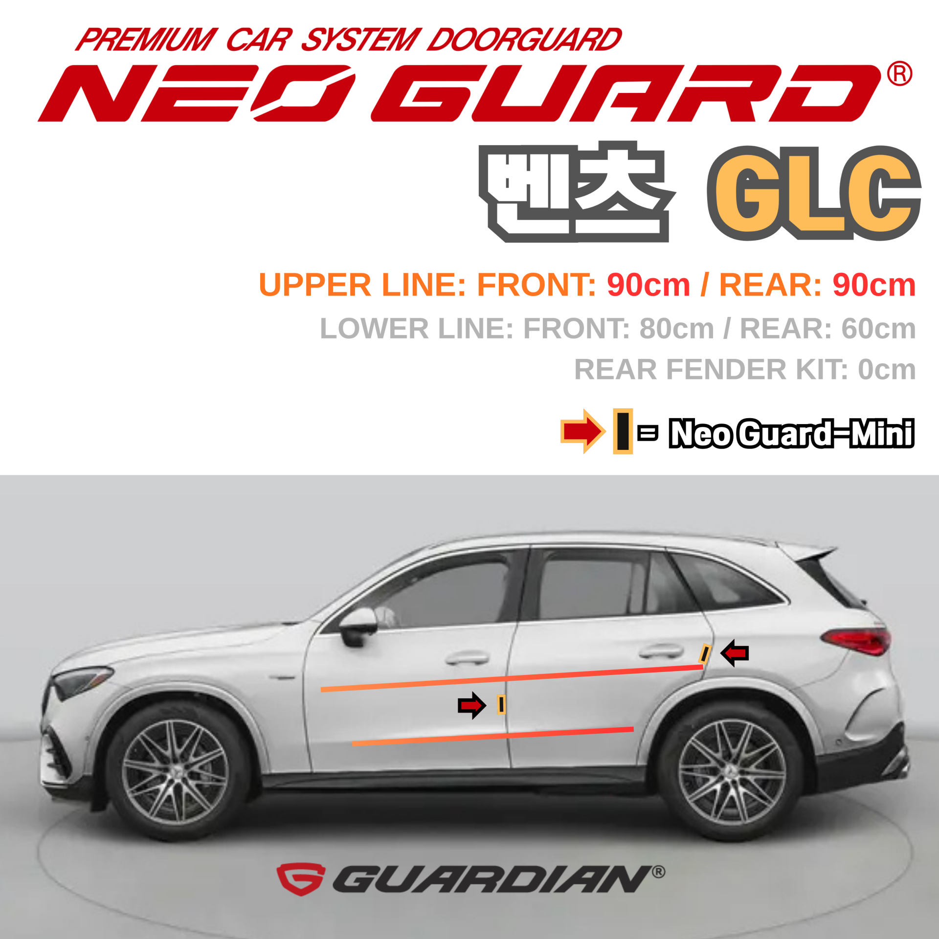 벤츠 GLC 전용 문콕방지가드 가디언 네오가드 셀프 시공 DIY세트 (자동차 딜러 서비스용)