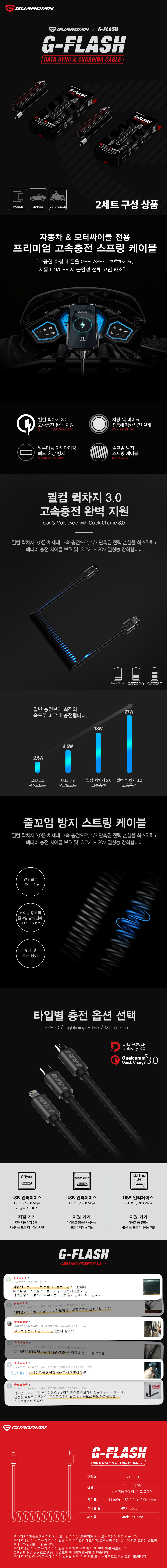 G-FLASH 퀵 차지 고속 충전 스프링 케이블 2세트 구성 상품